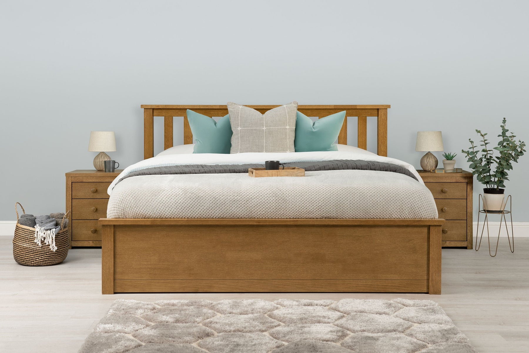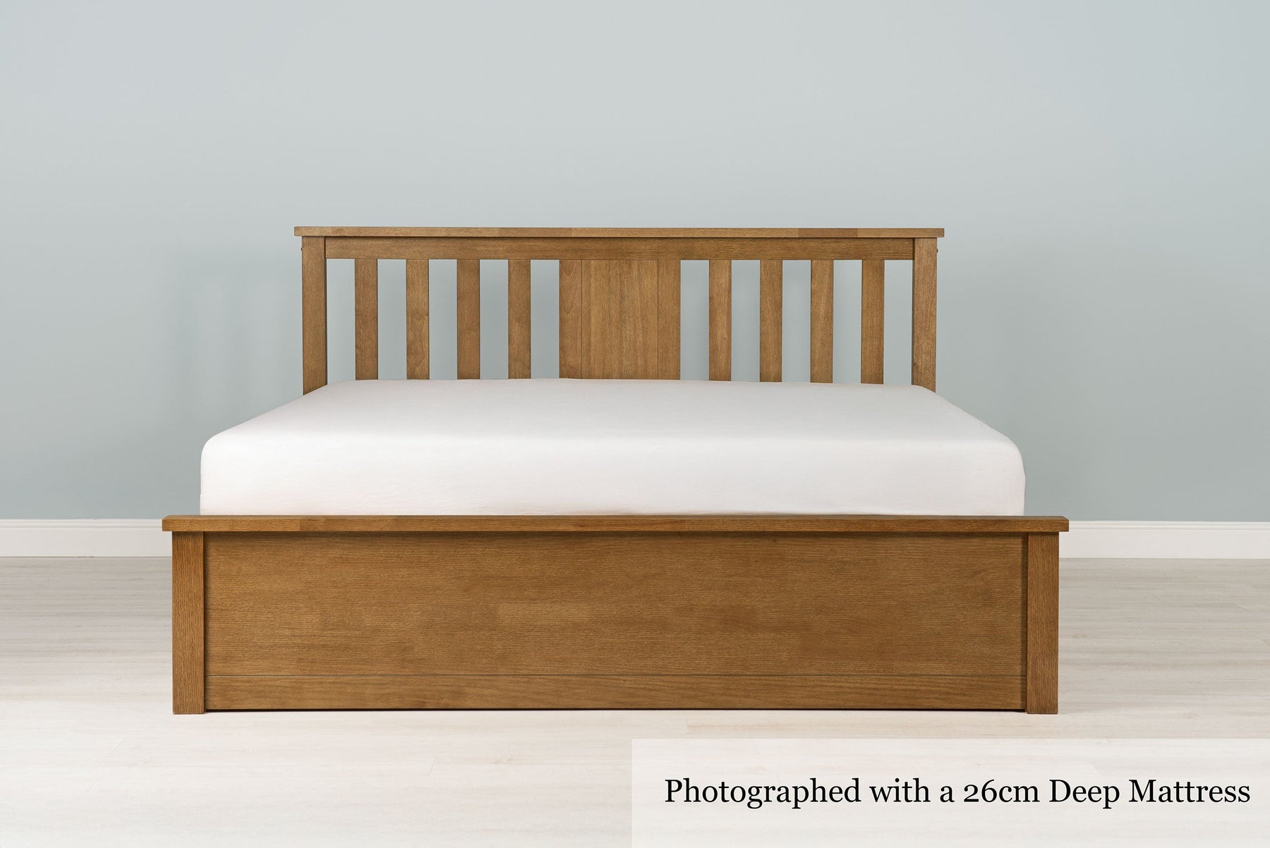This end-lifting, Ottoman bed frame has a Medium Oak finish and is the perfect choice to increase the storage space of any bedroom without compromising on style. Built to last from Solid Hardwood (Hevea), the Chester Medium Oak Ottoman Storage Bed Frame will remain sturdy and in-style for years to come.