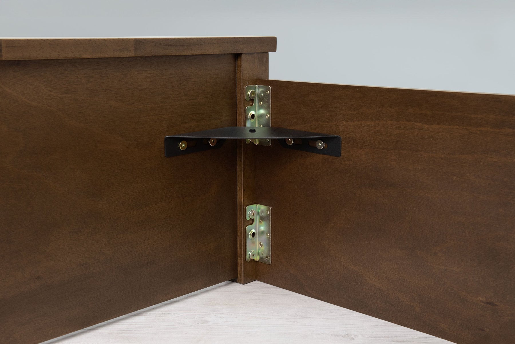 The internal storage dividers are made from particleboard with a PU veneer - these are not removable as they add lateral support to the side rails. The Chester Rustic Ottoman Storage Bed Frame is finished with a lightweight and durable lacquer, protecting it over its lifetime.