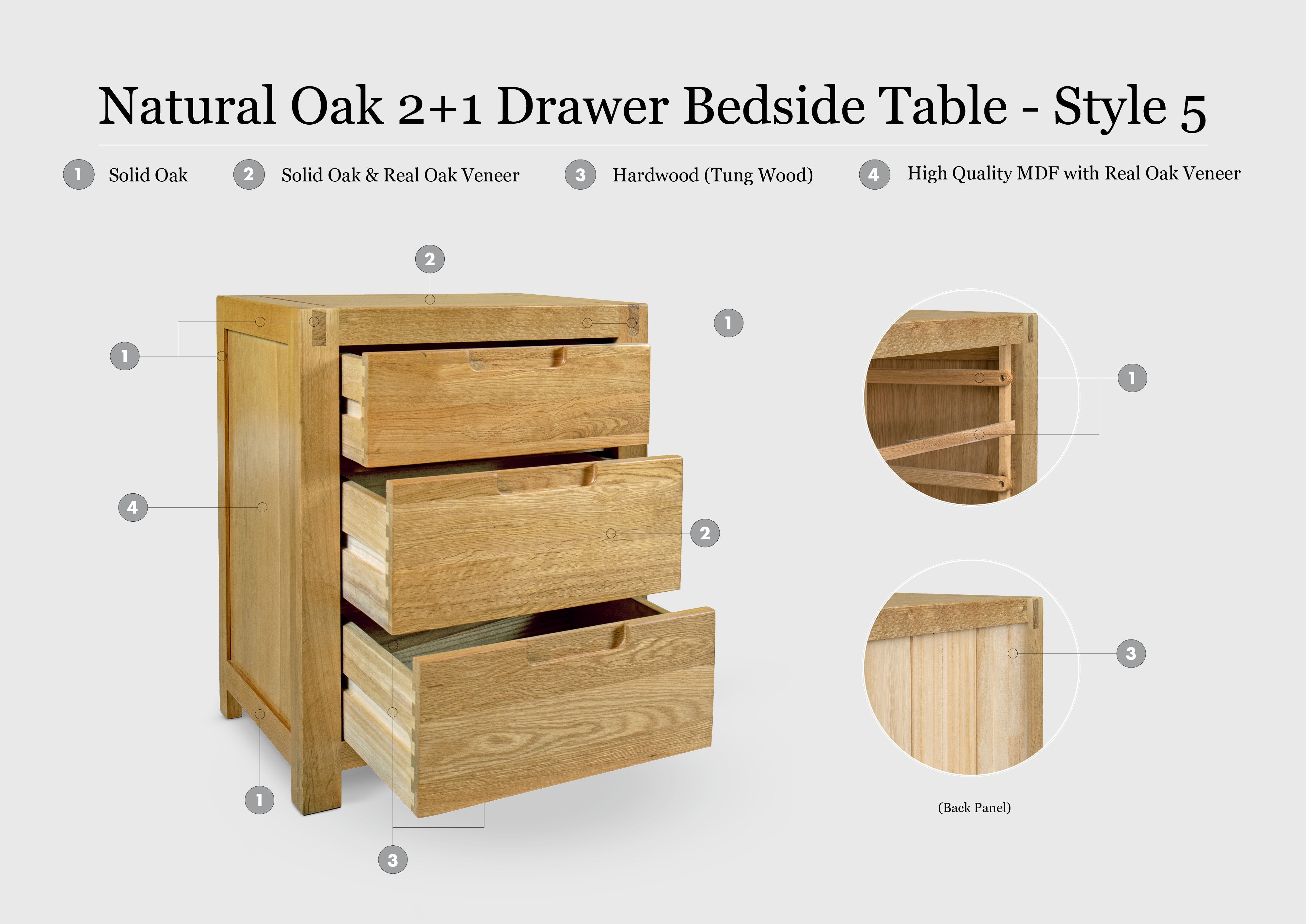 - Drawer Fronts made from Solid Oak and High Quality Real Oak Veneer
