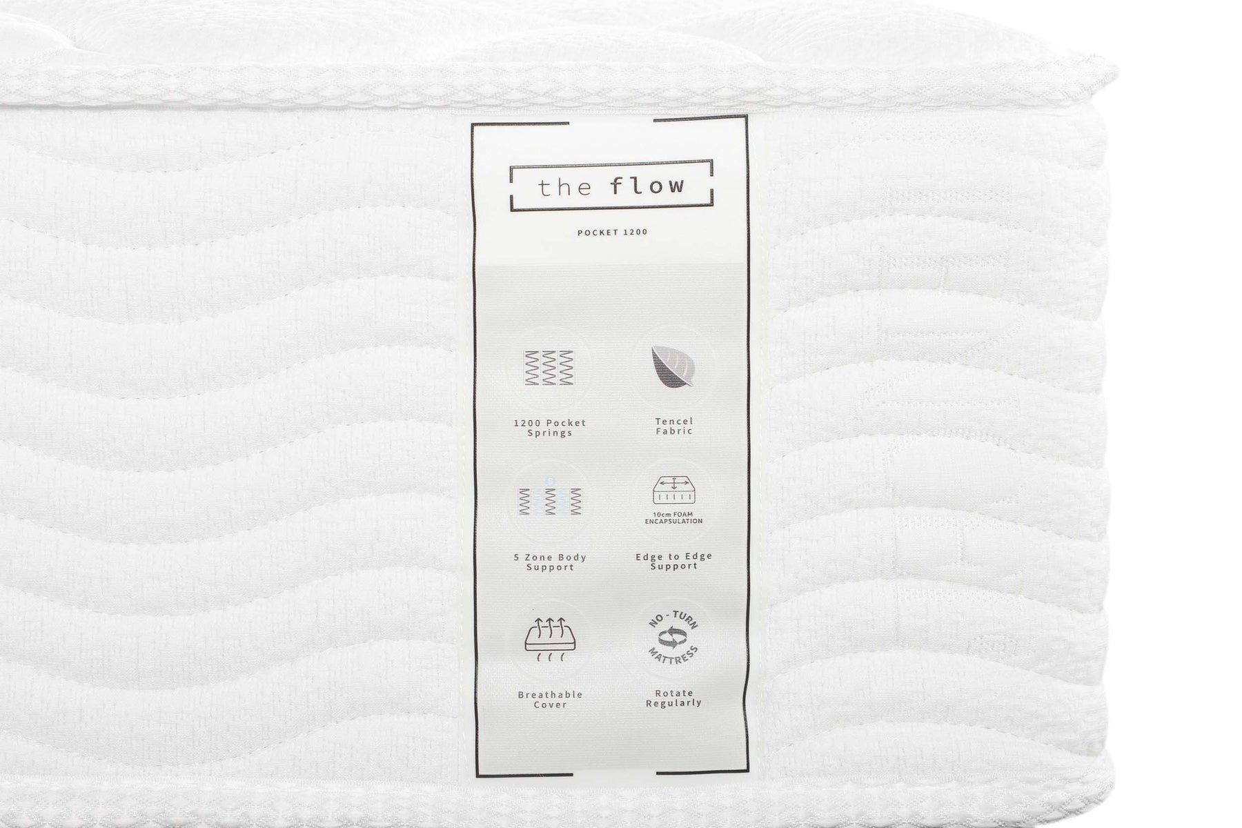 The Flow Pocket 1200 mattress is rated Medium-Firm, leaning towards the firmer side, this mattress offers the ideal blend of robust support and gentle cushioning with 200gsm of fibre in the quilting cover, perfect for those who prefer a stable yet comfortable feel.