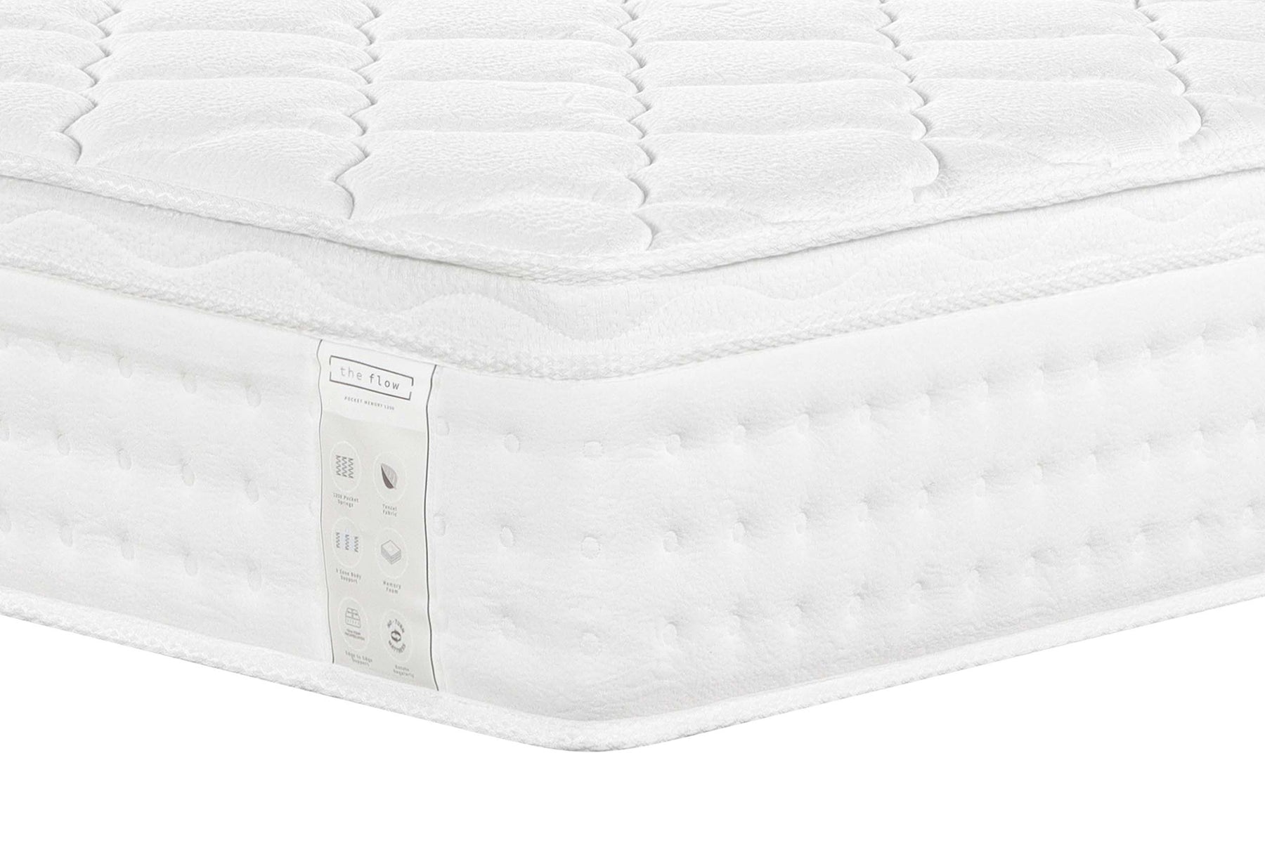 The Flow Pocket Memory 1200 Mattress delivers a medium-firm feel, combining dependable support with a touch of softness. Its quilted cover contains 200gsm of fibre and a 2cm layer of memory foam, creating a stable yet comfortably cushioned surface.