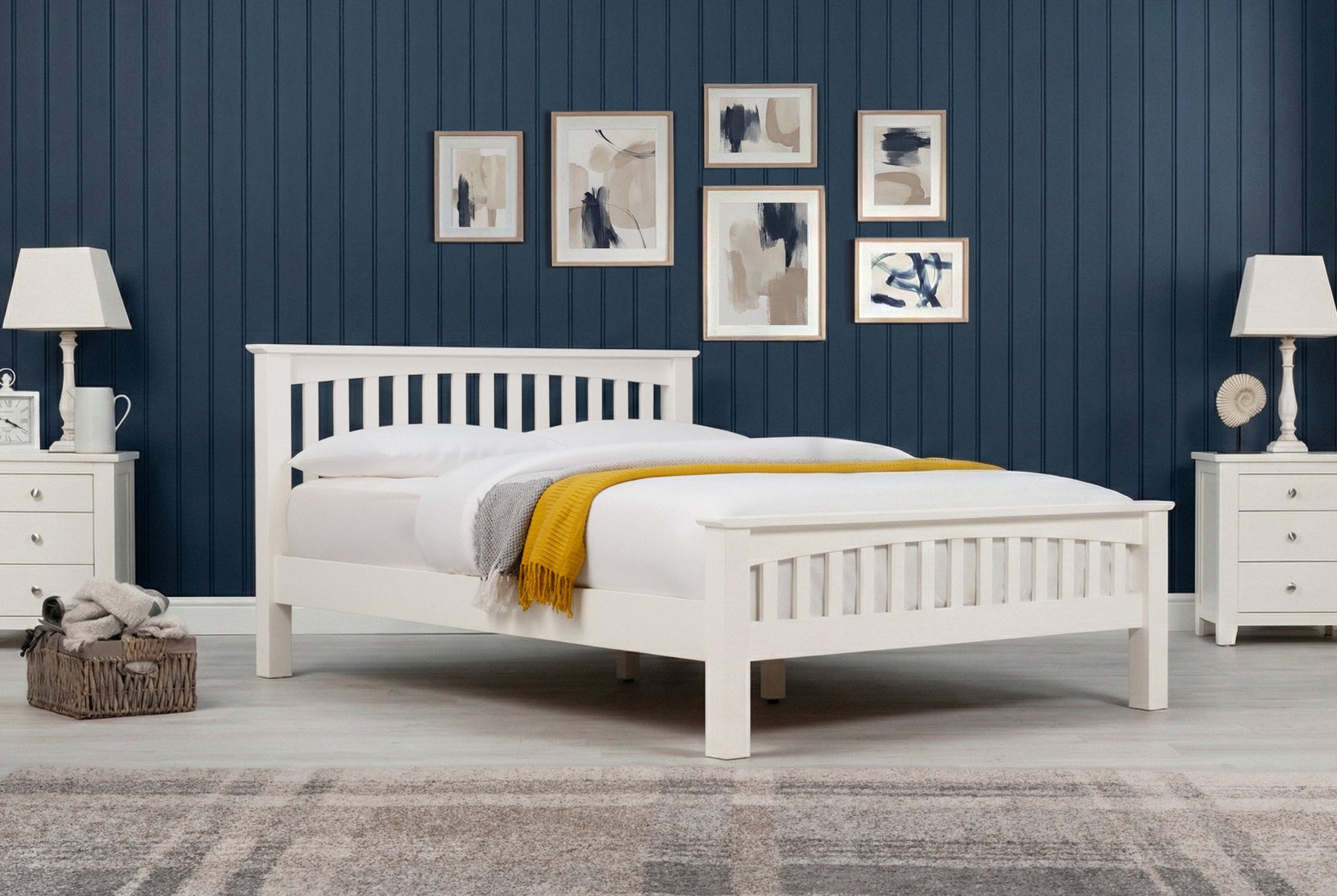The Boston Soft White Solid Wood Bed Frame is truly crafted for a lifetime of use with its sturdy structure and timeless design.