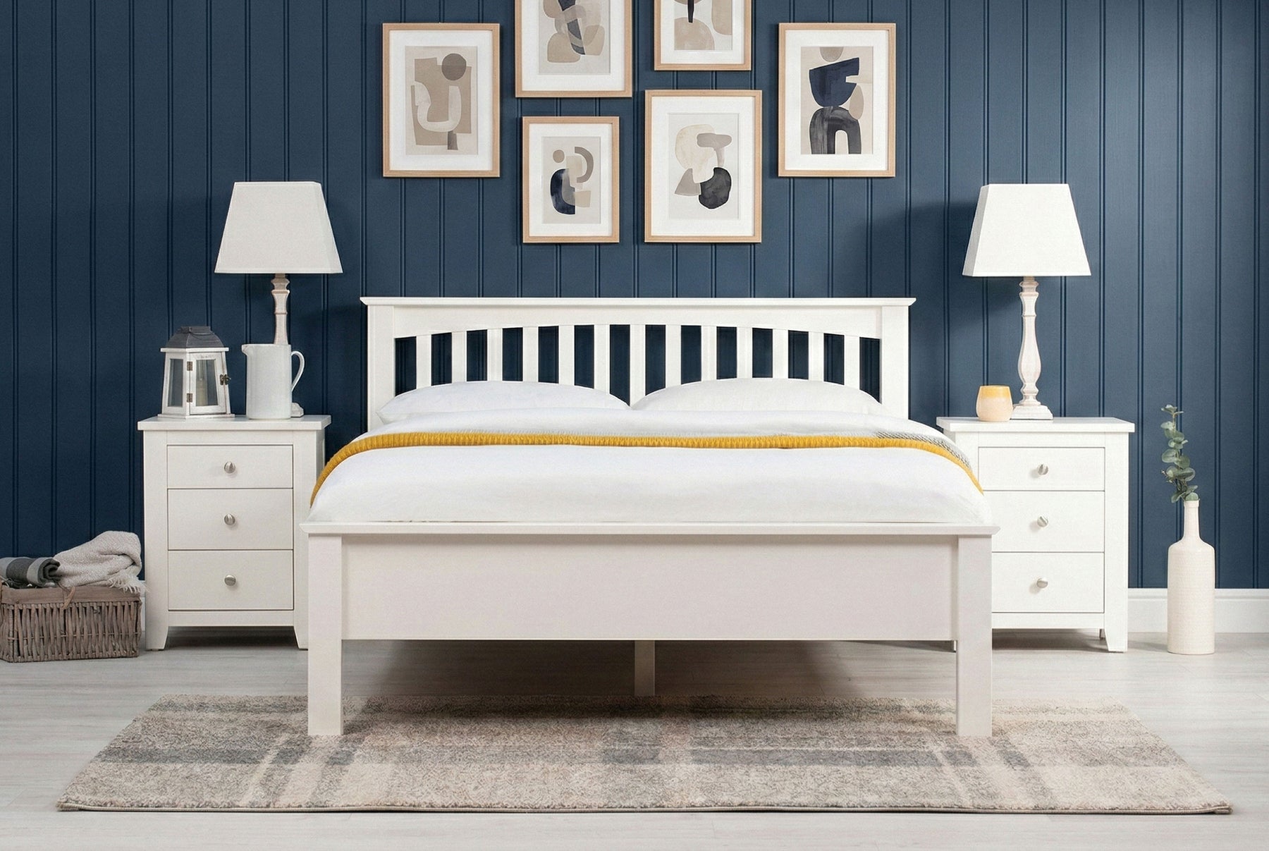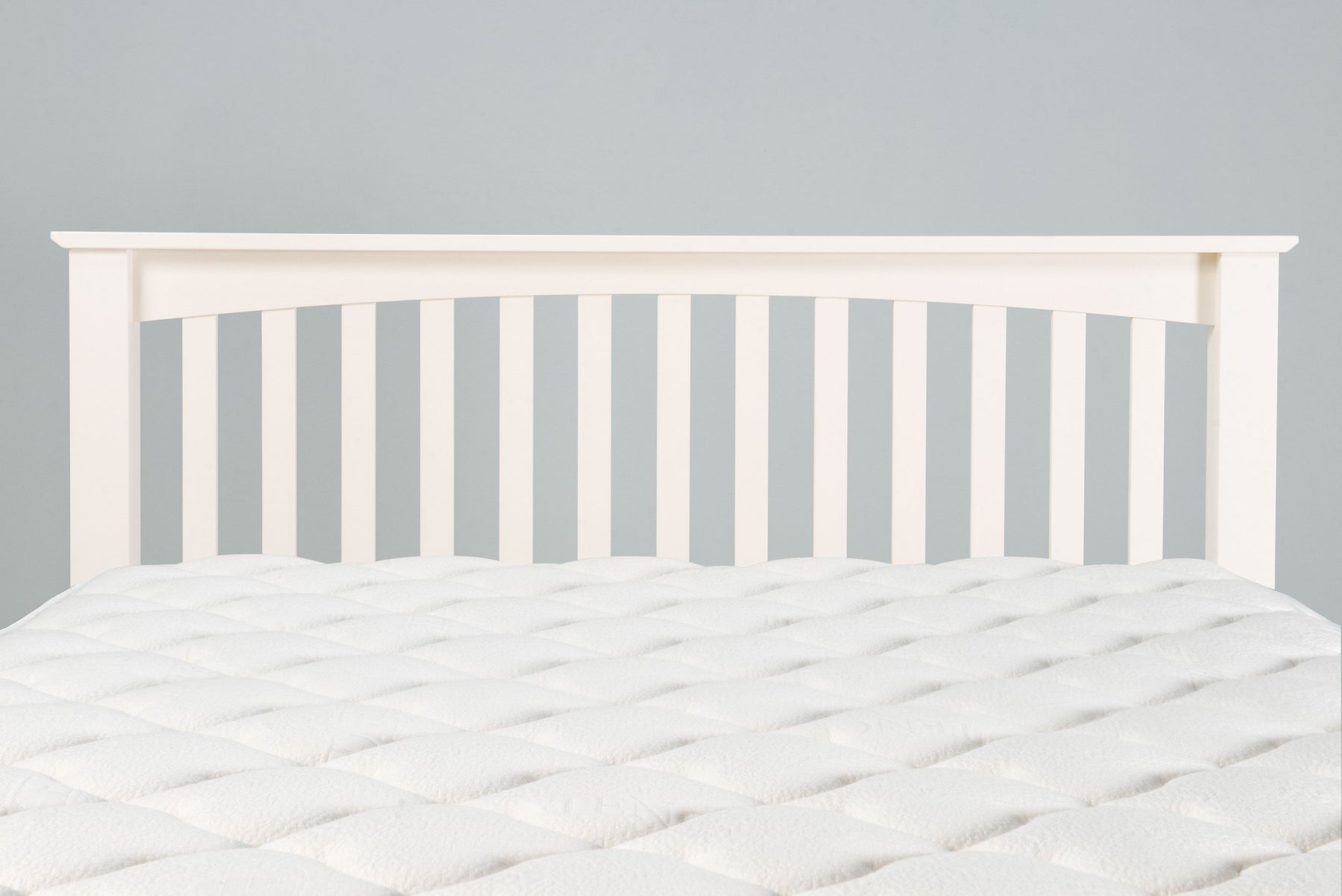 Design: Timeless slatted headboard with a lower-profile footboard in a smooth Soft White painted finish