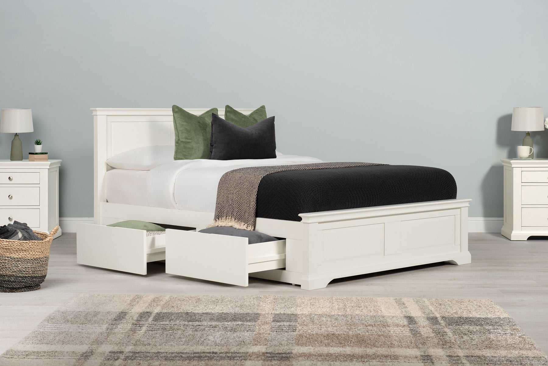Crafted from Solid Hardwood and with a durable Soft White painted finish, the Westcott Solid Wood Storage Bed Frame will remain sturdy and in-style for years to come.