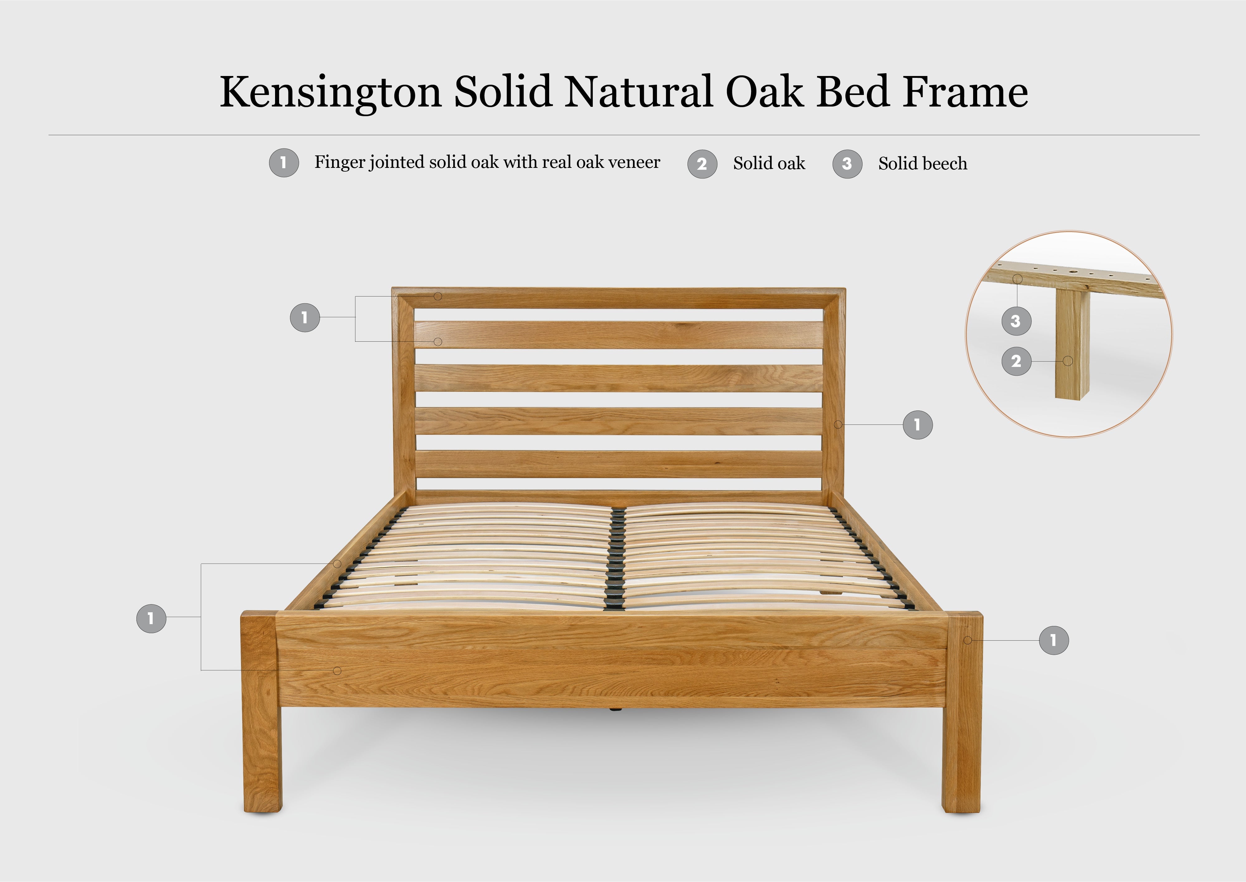 Crafted from American White Oak & High Quality Real Oak Veneer, protected with a light, clear lacquer to enhance the natural grain. The Kensington Natural Oak Bed Frame is sure to remain sturdy and in-style for many years to come.