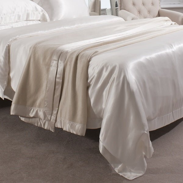This blanket is made from Grade A Mulberry Silk and is finished with a satin silk border.
